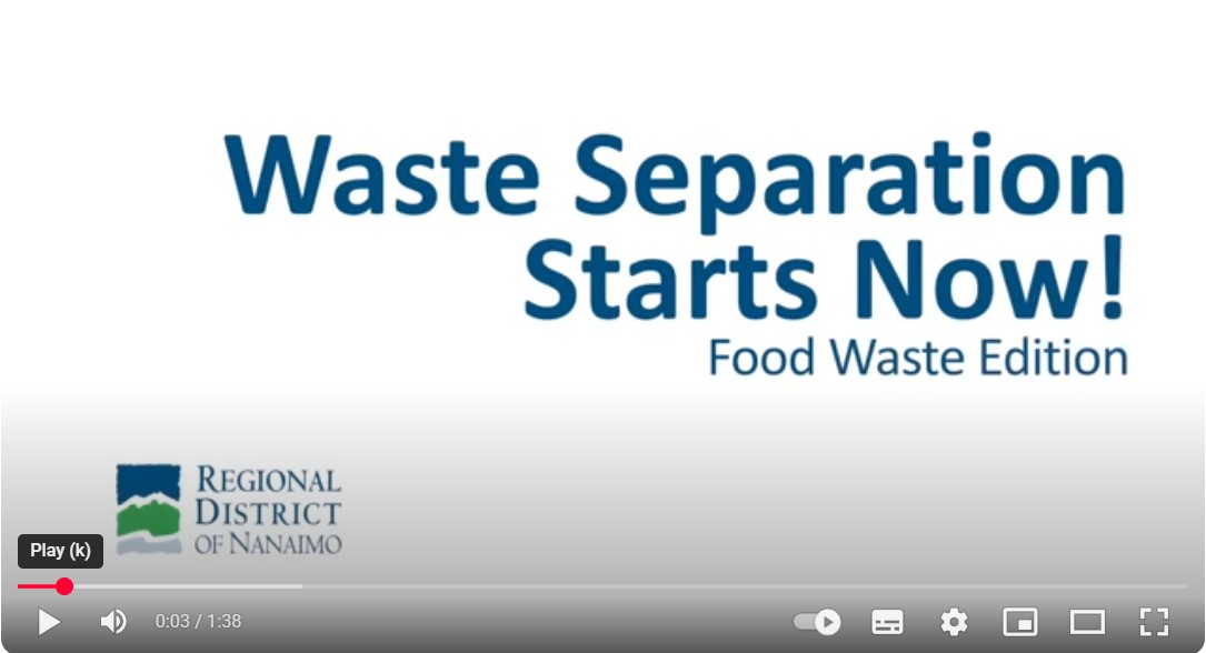 Separate – clearly labeled – collection containers are required for food scraps (food and food-soiled paper), recycling (paper/cardboard and containers), and landfill items/garbage for those who live, work, or have a business in the RDN.